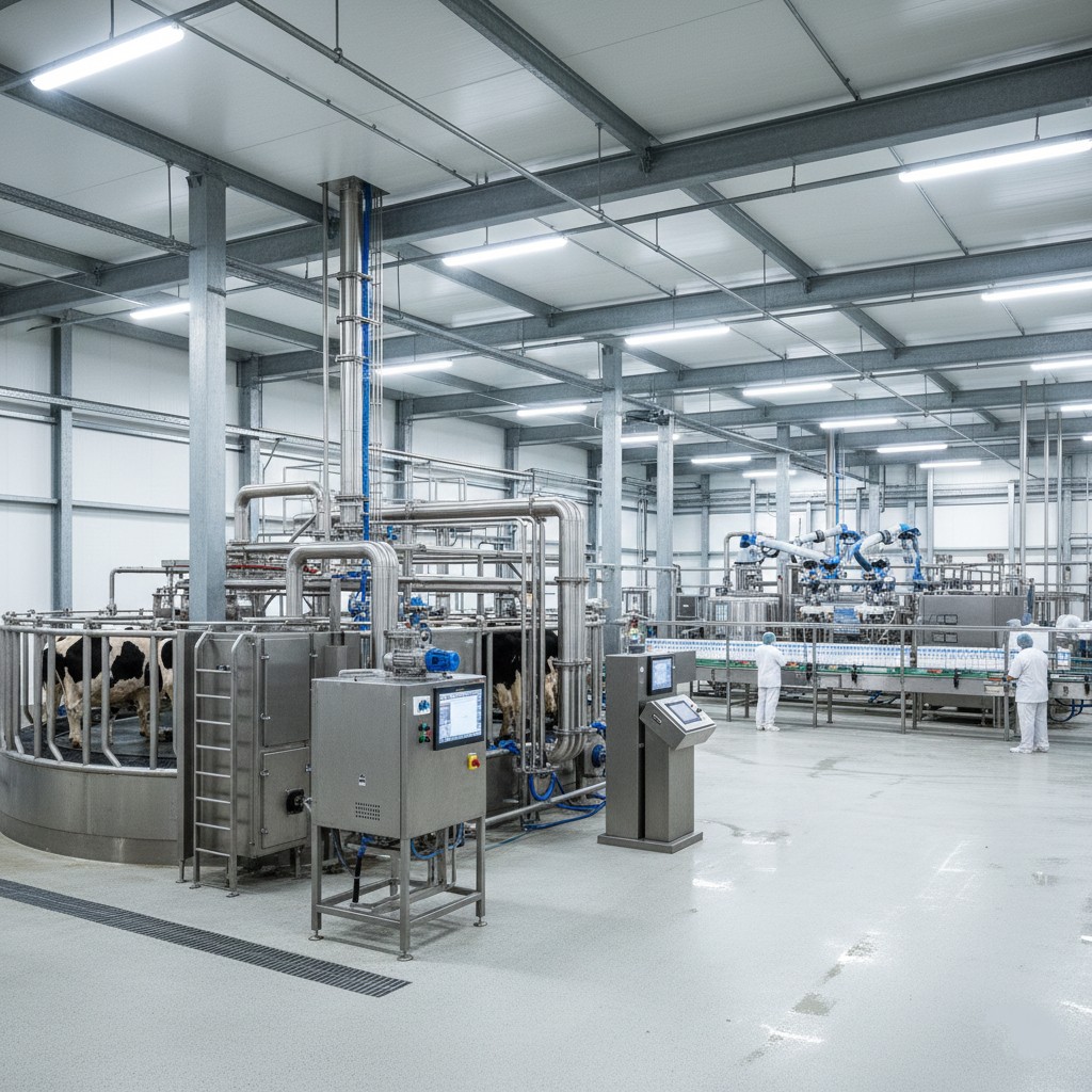 Scope of Work: Supply, installation, and commissioning of a high-throughput, closed-loop milking parlor and pasteurization line to quadruple current processing capacity while meeting EU hygiene standards.